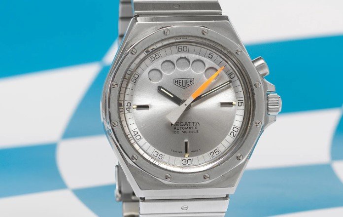 The Heuer Regatta 134.500 is a vintage “yacht timer” watch, designed for the regatta (yacht racing) sport. It features a specialized countdown mechanism to time the start of a sailing race.